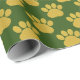Cute Gold Glitter Paw Prints Pet Lovers Green Wrapping Paper