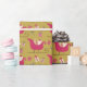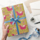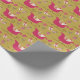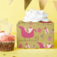 This cute Christmas gift wrap features a an adorable holiday pattern with a gold background and Santa's red sleigh with presents that are gift wrapped with pretty ribbons.