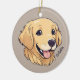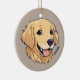 This personalised ceramic ornament features cute digital artwork of golden retriever with name. The image and pet name can be customised.