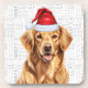 Cute Golden Retriever Dog in a Santa Hat Holiday Coaster