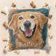 A cute and charming design of a golden retriever, filled with energy and joy. The dog's expressive eyes sparkle, and its wide smile conveys pure bliss. Its big floppy ears frame its face, and the scribbles and energetic lines give the drawing a quirky and endearing touch. The background is a blend of vibrant colours, adding to the playful atmosphere of the design. Click Personalise this template to add your dog's name to make it unique!