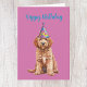 This adorable Goldendoodle puppy dog birthday card includes a cute Goldendoodle dog in a birthday hat graphic as well as a custom saying on the inside. This design also includes a magenta background. Enjoy this Goldendoodle puppy birthday card!