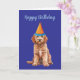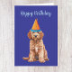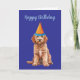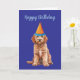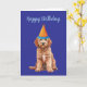 This adorable Goldendoodle dog birthday card includes a cute Goldendoodle dog in a birthday hat graphic as well as a custom saying on the inside. This design also includes a dark blue background. Enjoy this Goldendoodle puppy birthday card!