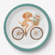 Cute Goldendoodle Dog Biking Spring Flowers Paper Plate