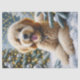 A heartwarming winter scene featuring a cute Goldendoodle dog in a snowy wonderland, surrounded by frosted trees and delicate snowflakes. This charming design captures the playful and cosy spirit of the season, making it a delightful puzzle for dog lovers and winter enthusiasts alike.