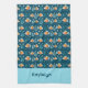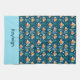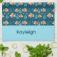 Very cute, cartoon goldfish swim around blue-green aquatic plants on a dark, ocean blue backgound. Personalize with your name in a wide, aqua band at the bottom. Would be very cute and fun in a beach house.
