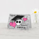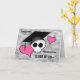 Super cute Gothic skull wearing a cap and 2 hot pink hearts and grey grunge greeting card for the graduate teen girl.