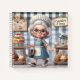 Cute Grandma and Dessert Recipes Notebook is a cute grandma wearing a bakers hat and an apron with cakes, cupcakes and a mixer on a blue and white chequered background Recipe Notebooks