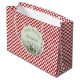 This Cute Grasshopper Insect Birthday Large Gift Bag features all-around red and white chequered background, capturing the essence of a charming picnic scene, with a green grasshopper hidden in the tall grass with ladybugs crawling about. Personalise with a heading and a name.