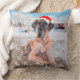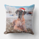 Cute Great Dane Dog Sitting In Snow Christmas Hat Cushion
