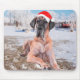 Cute Great Dane Dog Sitting In Snow Christmas Hat Mouse Pad