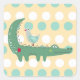 Cute Green Alligator with Seagull Polka Dots Square Sticker