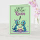 Cute Green and Purple Dinosaurs Boy 1st Birthday Card