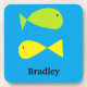 Vibrant and adorable, this artwork features cute green and yellow fishes swimming playfully against a serene blue backdrop, creating a delightful and charming aquatic scene. Personalised with a custom name, it adds a touch of uniqueness to this whimsical gift.