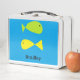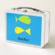 Cute green and yellow fishes on blue metal lunch box