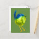 Cute green bird watercolor postcard