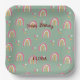 Cute Green Boho Rainbow Birthday Custom Name Paper Plate