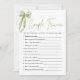 Cute Green Bow Couple Trivia Bridal Shower Game Invitation