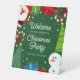 Cute Green Christmas Party Santa & Snowman Pedestal Sign