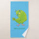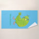 Cute green curious parakeet cartoon illustration bath towel set