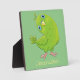 Cute green curious parakeet cartoon illustration plaque