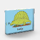 Cute green dimetrodon cartoon illustration photo block