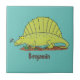 This funny green dimetrodon dinosaur is sharing space with a bug.