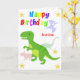 Cute Green Dinosaur T Rex Happy Birthday Card