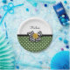 Cute Green Dots Yellow Rose Chevron Bow and Name Paper Plate