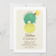 Kids boy birthday invitation with cute green elephant for zoo / circus theme party.