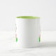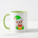 Cute green elf holding a gift box on white background Mug. Name can be personalised. Ideal for St. Patricks Day