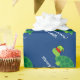Cute green elf turtle children's Christmas Wrapping Paper. Cute vector animal design with funny elf hat. Personalised gift wrap for parents, children and babies. Funny illustration with for the winter Holidays. Add your own name and custom seasons greetings like Merry Christmas or Happy Holidays. Also fun for Xmas baby shower party. Customisable background colour ie blue. Gender neutral design for boys and girls.