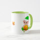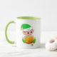 Cute green elf holding a pumpkin on white background Mug. Name can be personalised. Ideal for Fall Season