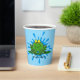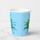 Cute Green Frog Design Paper Cups with customisable text and background colour. The blue "splash" can be removed if desired.