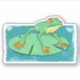A cute cartoon style illustration of a small green frog standing on a lily pad in a pond. Mindful anyone who loves frogs