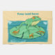 A cute cartoon style illustration of a small green frog standing on a lily pad in a pond. Mindful anyone who loves frogs