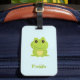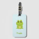 Cute green frog on blue luggage tag