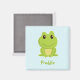 Cute green frog on blue magnet