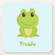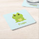 Cute green frog on blue square paper coaster