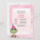 Cute Green frog Birthday Party invitation for with an adorable girl frog wearing a birthday party hat. Customise with your party details.
