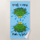 Cute Green Frog Splash Design Beach Towel with customisable background colour and text.