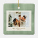 Cute Green Gingham Plaid Custom Photo Christmas Ceramic Ornament