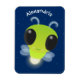 This cute green firefly glow bug is shining with happiness on a delightful evening. Drawn in fun cartoon illustration style.