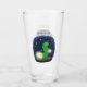Cute green glow worm cartoon illustration glass