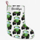 Cute green happy farm tractor cartoon illustration small christmas stocking
