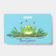 Cute green hungry frog cartoon illustration ID badge