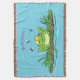 Cute green hungry frog cartoon illustration throw blanket