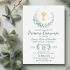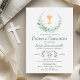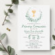 Celebrate a sacred milestone with our Cute Greenery First Communion Invitation. Adorned with pretty green leaves and a charming chalice, this invitation extends a warm welcome to boys or girls, inviting loved ones to join in this special moment of holy communion.