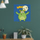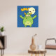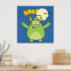 brighten up any kids bedroom or playroom with this cute green monster poster featuring a cheerful horned creature and a bold yellow boo message. the vibrant cartoon illustration showcases a happy lime mascot against a starry night sky and a large glowing moon. this friendly spooky wall art is perfect for halloween decorations or year round nursery decor for children who love whimsical monsters. printed with high quality colors this character themed poster adds a playful and festive touch to any space.