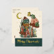 Cute Green Mushroom Frog and Toad Merry Christmas Foil Holiday Postcard